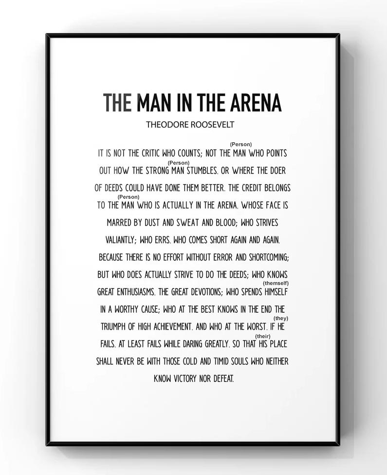 >   The Man in the Arena (Part of Teddy Roosevelt's 1910 Speech)